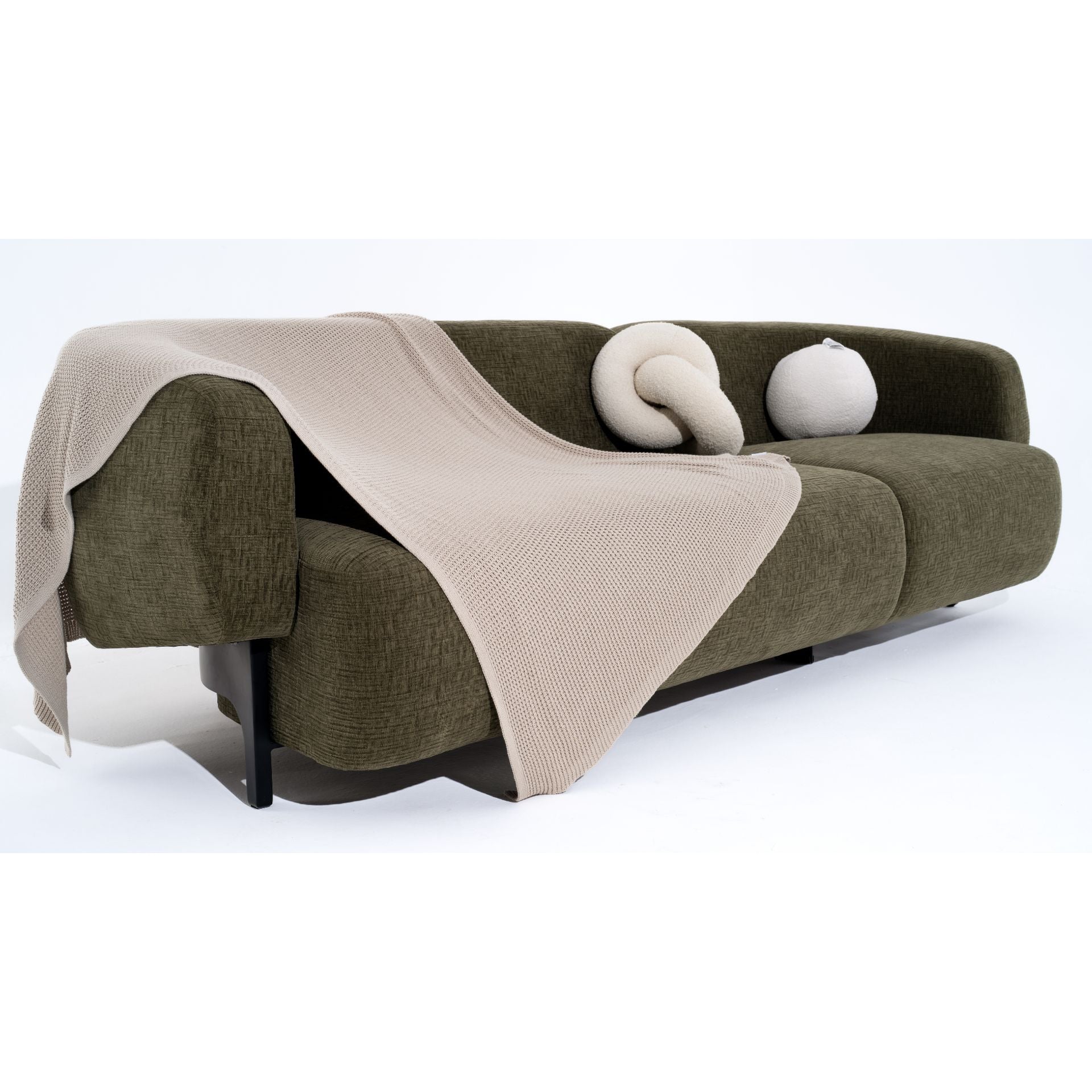 Drawing inspiration from the clean, sharp lines of a trapezium, this couch features a bold, angular design with just the right soft curves that adds a contemporary flair to any space. Upholstered in an exquisite Italian silk blend cloth, the couch exudes unparalleled softness and a lustrous finish that catches the light beautifully. The rich texture of the fabric enhances its opulent appearance, inviting you to relax in both comfort and style.